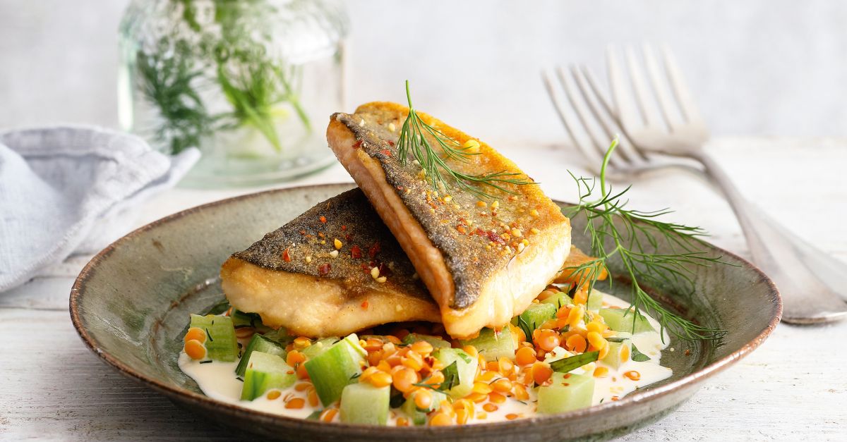 Saibling Auf Linsen Gurken Gemuse Mit Dill Rezept Eat Smarter